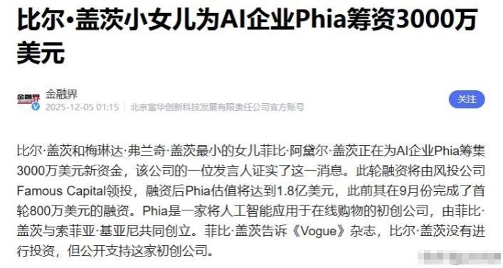 27编号:面对外界批评,菲比曾在播客节目中强调,自己并未动用父母一分钱,盖茨本人也明确表示未直接注资其企业。